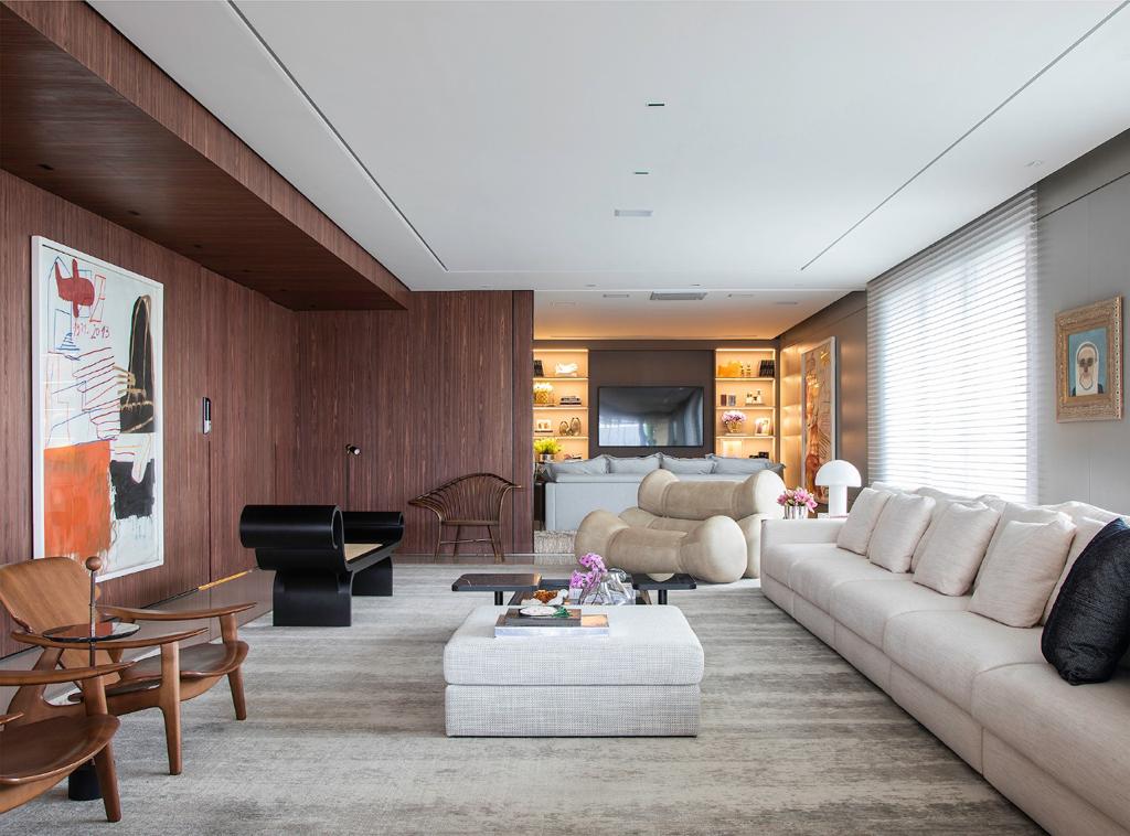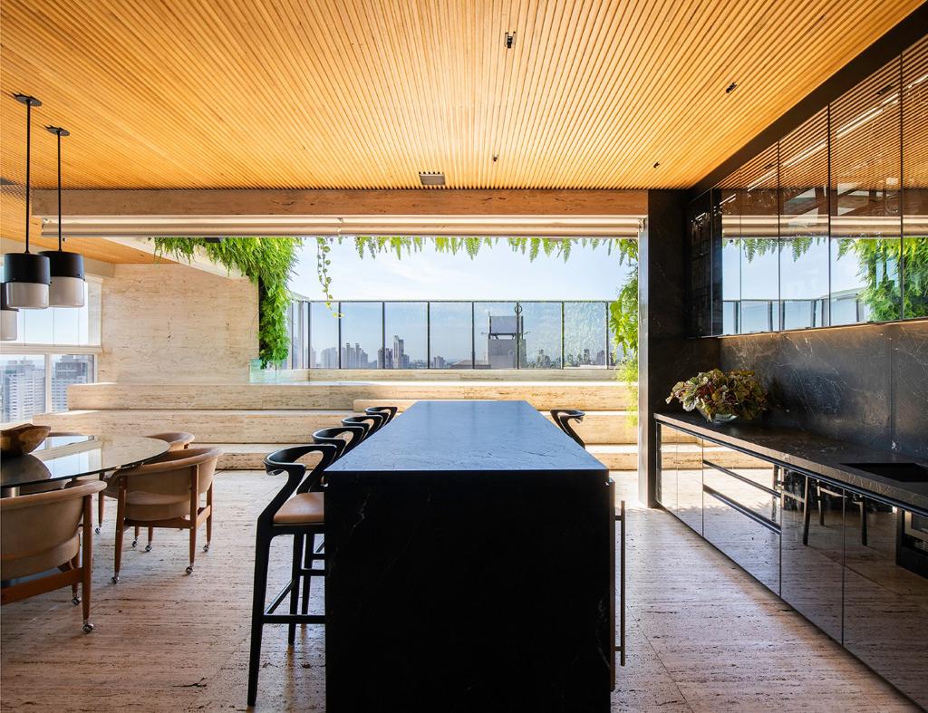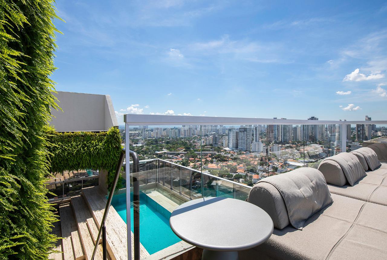 Esta cobertura distingue-se, ainda, pela criteriosa seleção de mobiliário e acabamentos assinados por expoentes consagrados do design e da arquitetura brasileira, conduzindo o imóvel a um patamar internacional de sofisticação