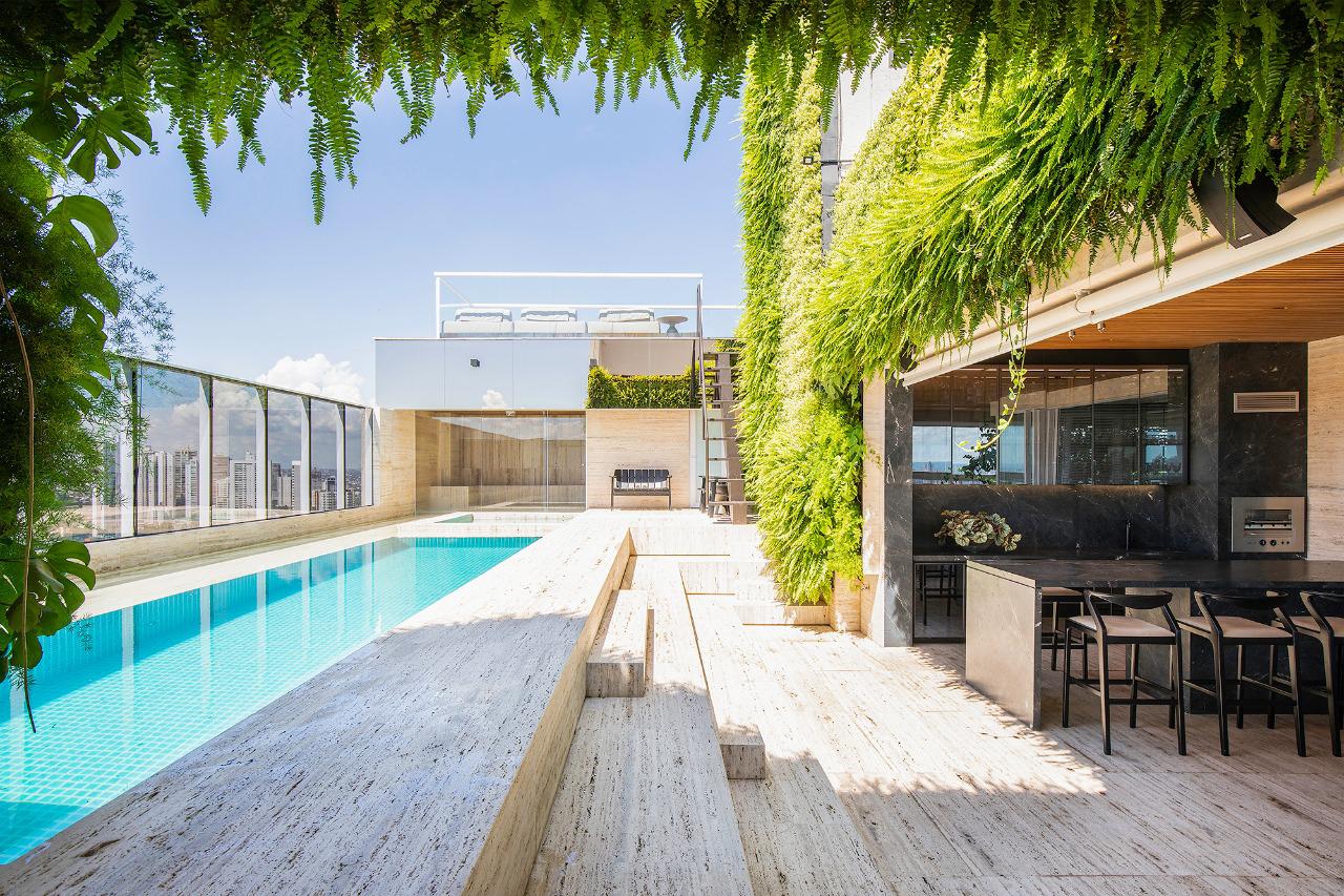Jardinagem completa, incluindo varanda, área da piscina e jardim vertical