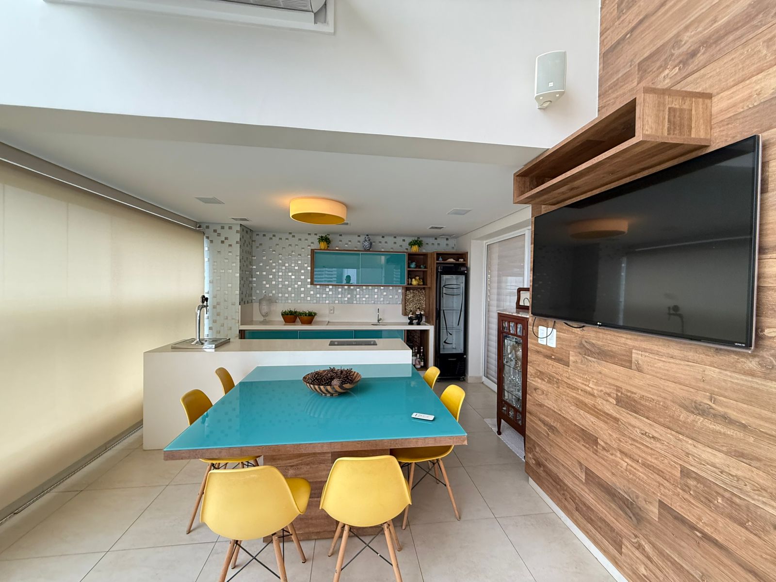 Varanda gourmet ampla com churrasqueira