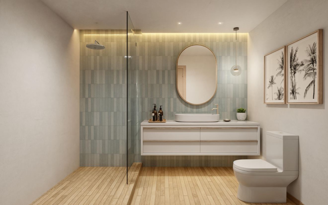 • Banheiros com box de vidro sem moldura
