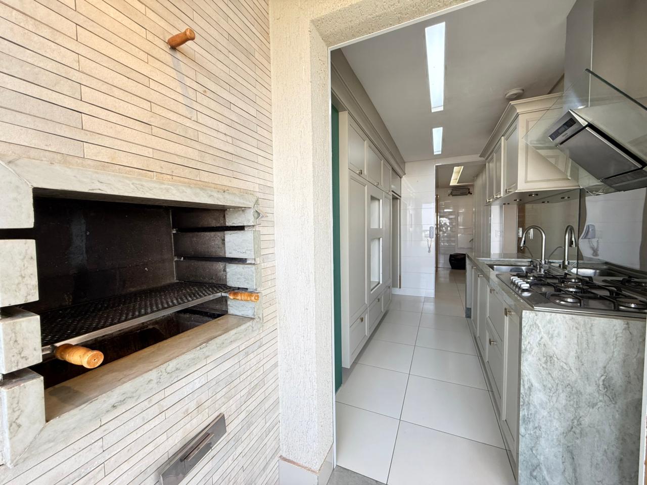 A varanda gourmet com churrasqueira a carvão convida para momentos de lazer e convivência inesquecíveis.