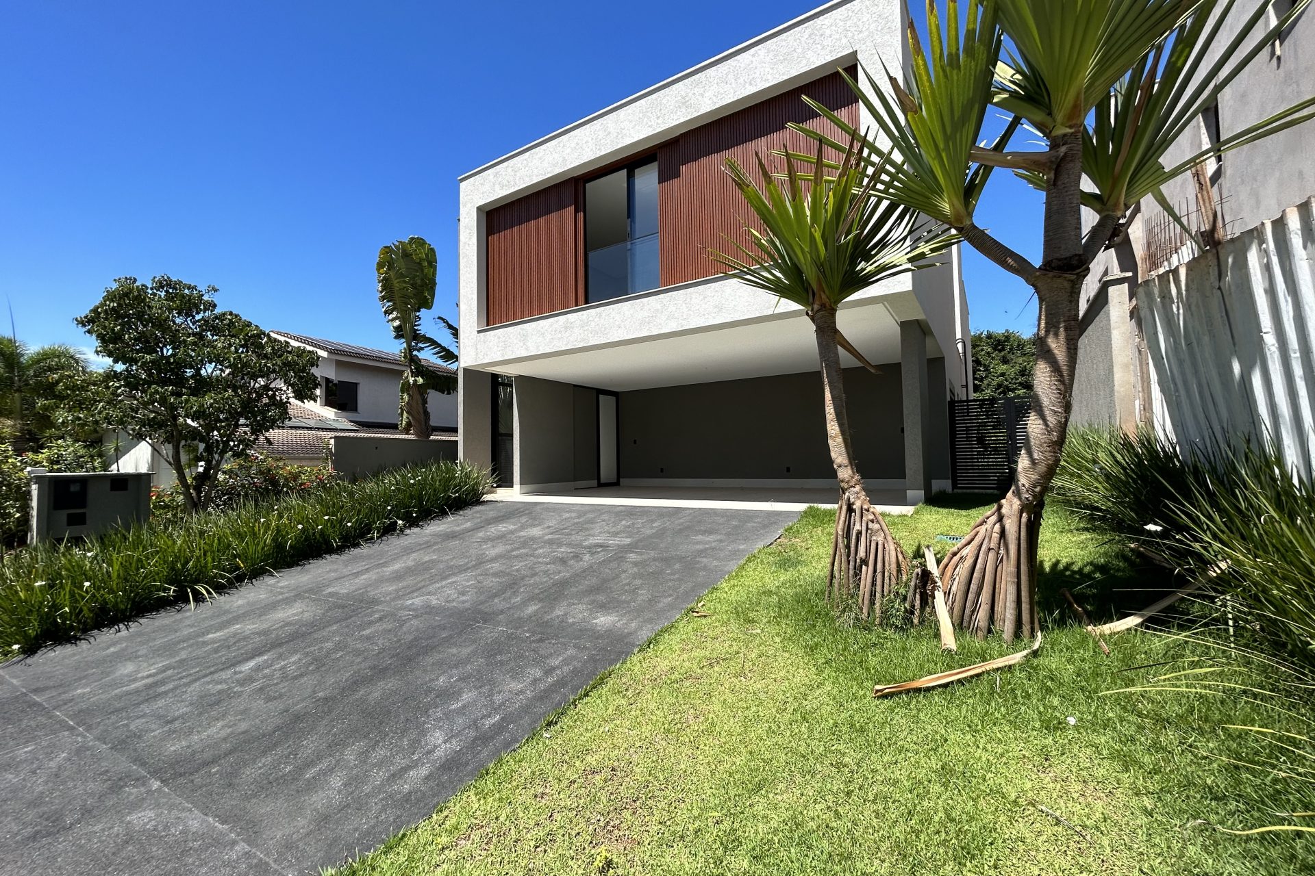 Este sobrado de luxo no Alphaville Ipês, localizado na Avenida Catleia, no Alphaville Flamboyant, em Goiânia – GO, é a perfeita tradução do morar contemporâneo aliado à exclusividade, segurança e contato direto com a natureza. Situado a apenas 400 metros da portaria, o imóvel ocupa uma das posições mais desejadas do condomínio, com fundo definitivo para a mata, proporcionando privacidade absoluta e uma vista permanente e exuberante.