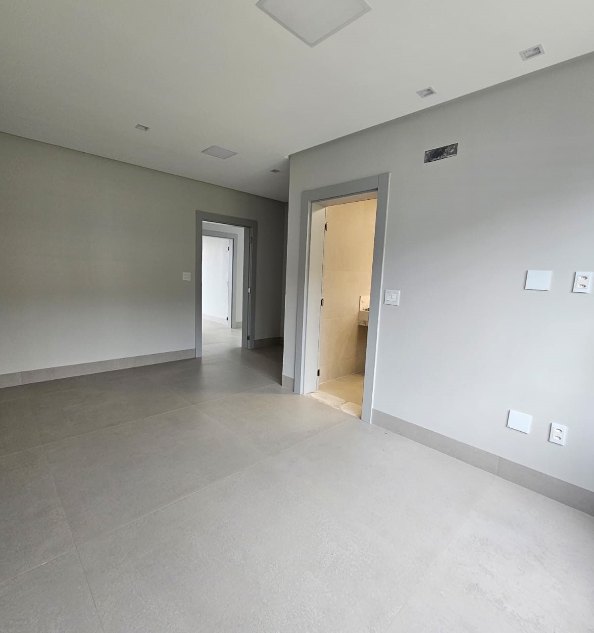 No pavimento superior, a área íntima foi cuidadosamente planejada para oferecer conforto, privacidade e elegância. As suítes são amplas e bem distribuídas, com destaque absoluto para a suíte master, que eleva o padrão da residência ao unir espaço generoso, acabamentos nobres e uma atmosfera de exclusividade.