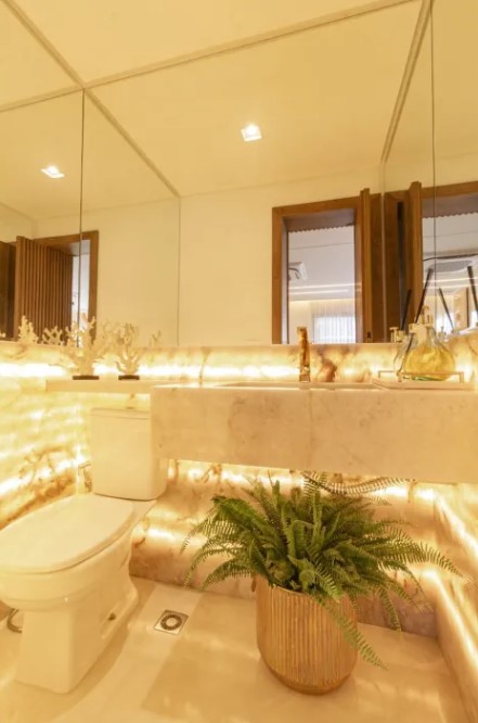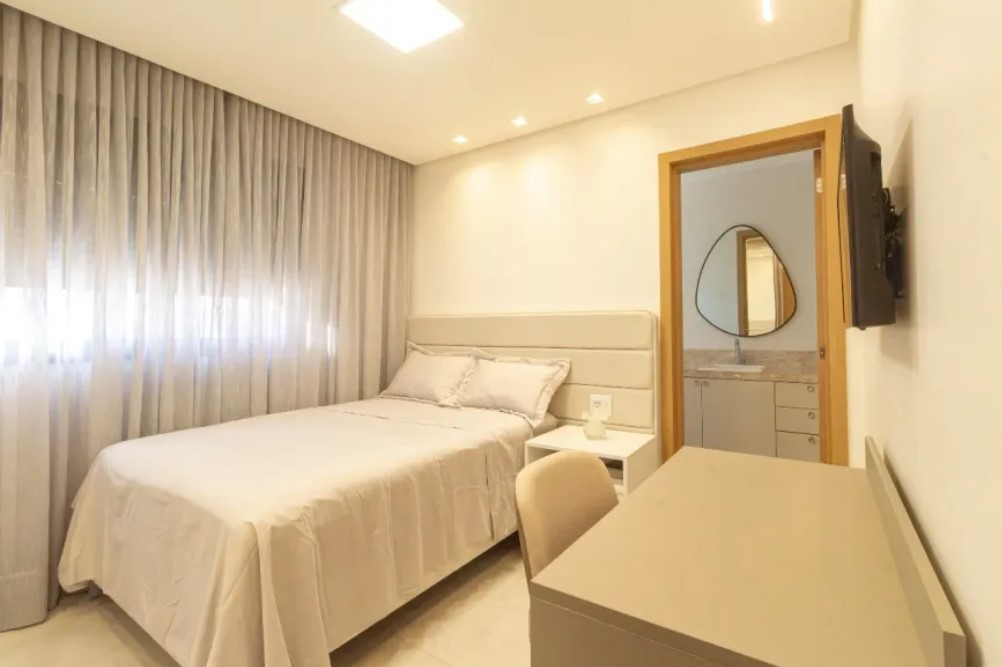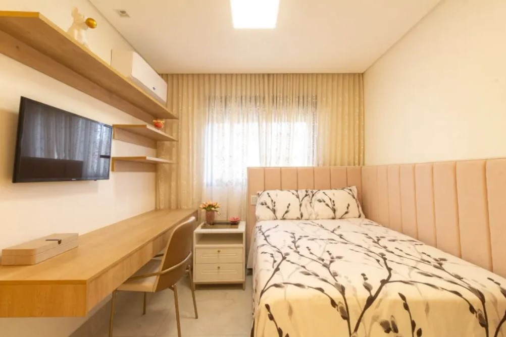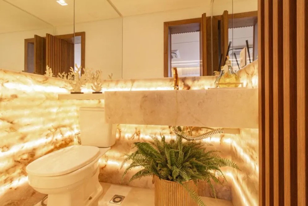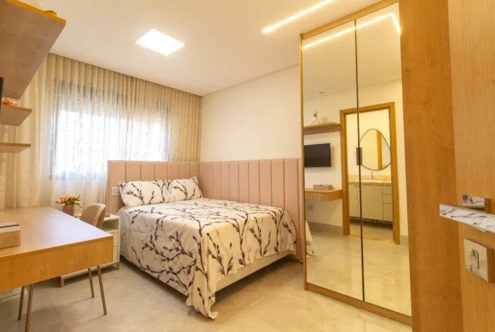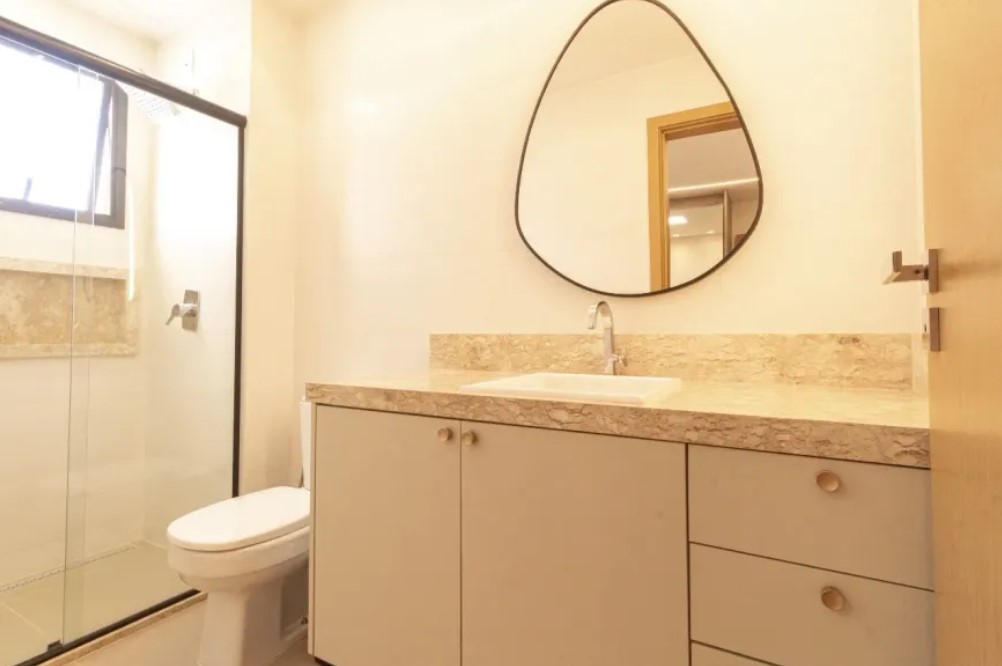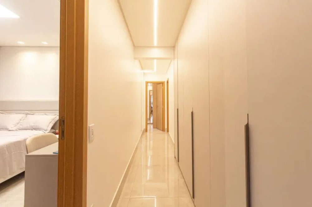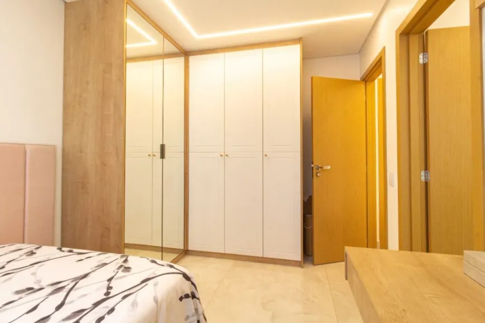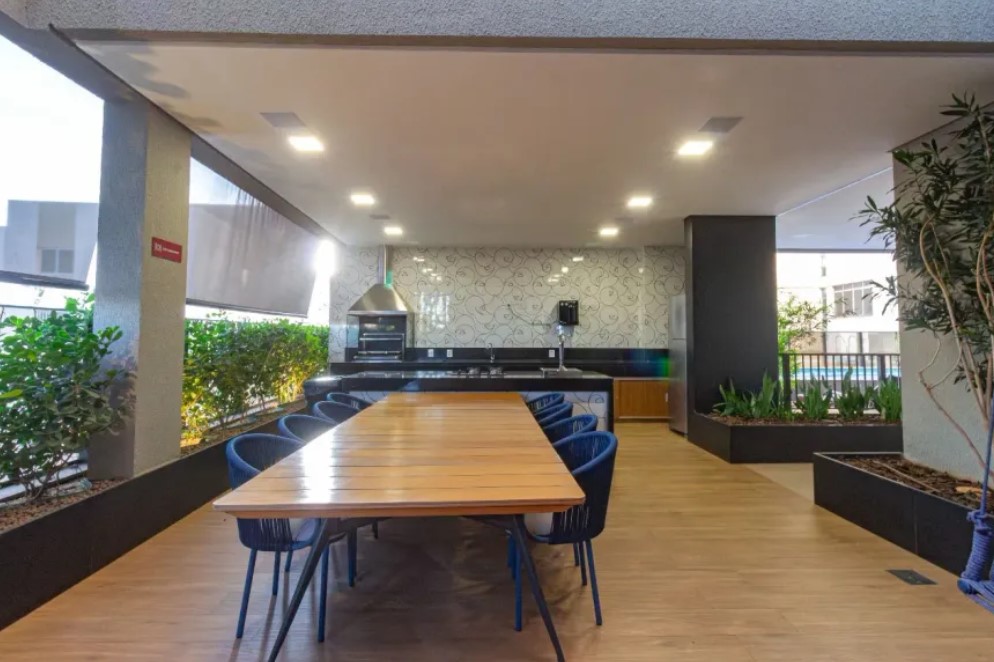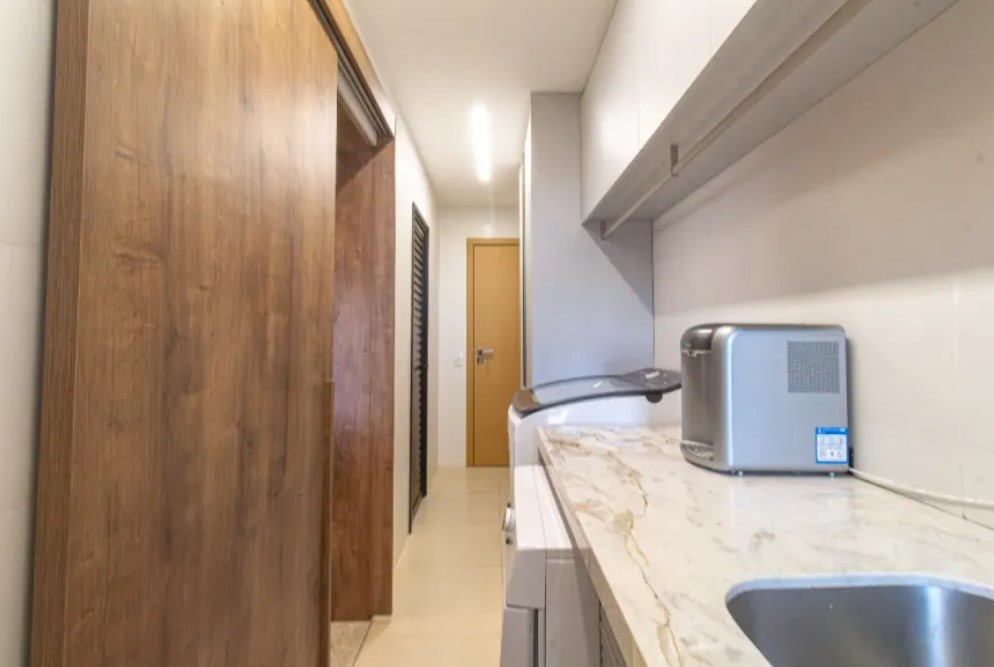 Além disso, a área de serviço é funcional e bem planejada, com banheiro de apoio e excelentes armários.